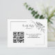Um simples e elegante cartão de confirmação de presença para site de casamento em estilo de design minimalista moderno com letras clássicas e um visual elegante e sofisticado em fundo branco A mensagem pode ser facilmente modificada com a data, site de casamento e código QR scaneável.