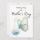 Diga a alguém que está em seus pensamentos este Dia das Mães com este gentil e elegante cartão. Uma borboleta translúcida de cor d'água e uma flor azul macia descansam contra delicados sotaques de ouro, oferecendo uma mensagem silenciosa de conforto, lembrança ou apoio emocional. Ideal para aqueles que honram a memória de uma mãe ou navegam hoje com ternura.