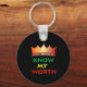 Chaveiro redonda com as palavras "Know My Worth" na frente, com uma coroa ouro no topo. A parte de trás apresenta um sinal de ouro dolar.
