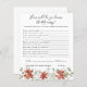 Este cartão de jogo de chá de fraldas apresenta belas florais de inverno de cor aquosa, em tons de vermelho e branco, que são balanceados com verde-luxuoso, fazer-o uma paleta quente e arejada. Altere a cor de fundo ou adicione gráficos para corresponder ao tema do chá. Precisa coordenar gráficos, entre em contato comigo para obter um pedido personalizado. Claro que não é necessário que você jogue jogos no chá de fraldas, mas considere isso: Você terá um grupo de todas as idades, e a maioria dos convidados provavelmente nunca se conheceram antes da festa. Misturar alguns desses jogos clássicos de chá de fraldas é uma maneira perfeita de quebrar o gelo. Essas placas projetadas profissionalmente são rapidamente personalizáveis. Adicione seu texto personalizado a este design usando as caixas "Editar este modelo design" no lado direito do item, ou clique no botão azul "Personalizar" para organizar o texto, alterar as fontes e cores e também adicionar informações ou imagens adicionais a este design. Clique em "Personalizar mais" para abrir as opções de edição de cheio. Se você precisar de algum item de coordenação (cartões de agradecimento, etc.), entre em contato comigo para obter um pedido personalizado. ****Para pedidos personalizados com os quais necessita da minha ajuda, não coloque esta mercadoria no carrinho. Em vez disso, envie-me um e-mail com sua solicitação em lauralise@iyhtvdesigns.com Um link para sua mercadoria será enviado a você por e-mail assim que o item estiver disponível. Você pode usar esse link para fazer seu pedido. Por favor, aguarde até 48 horas.