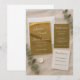Eleve o seu dia especial com este luxuoso Conjunto de Convite de Casamento em Acrílico Espelho Dourado. Com um acabamento espelho dourado refletivo e caligrafia gravada, este elegante conjunto de casamento inclui o convite principal, cartão de RSVP e cartão de detalhes. Projetado com um estilo minimalista moderno, acentos de eucalipto e detalhes rústico-luxuosos, é a escolha perfeita para casamentos sofisticados e atemporais. Ideal para casais que procuram um convite único e de alta qualidade para impressionar os convidados.