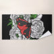 Ilustração vetorial desenhada à mão da mariposa cinabar sobre um buquê de flores de pénia