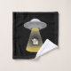 Ícone de clipart de ilustração do vetor de sequestro de alienígena de vaca engraçado, cor de fundo e texto personalizáveis.