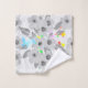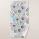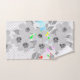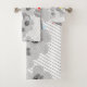 Este design de toalha balnear floral offset apresenta tons suaves de cinza, folhas de cinza afiadas em canvas branca, embelezadas com lascas coloridas de tinta e linhas de salão fina de cinza espelhadas, resultando numa elegante composição floral.