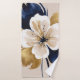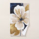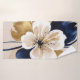 Adorne o seu espaço com este design de flor de abstrato inspirado em aquarelas. A mistura harmoniosa de bege, azul profundo e matizes dourados cria uma estética sofisticada e serena, perfeita para adicionar um toque de elegância moderna a qualquer sala.