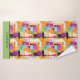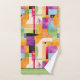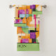 Conjunto De Toalhas Abstrato Geométrico em Laranja, Verde e Roxo