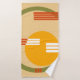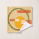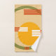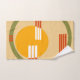 Este conjunto de toalhas tem um desenho abstrato moderno do século médio de um círculo dourado dentro a um círculo verde com rugosidades e faixas brancas.