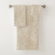 Este conjunto de toalhas de banho apresenta um padrão moderno de traçado do pincel de abstrato em branco no caqui bronzeado para um aspecto contemporâneo e neutro.