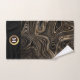 Uma toalha de banho moderna preta e dourada com um padrão de espiral de abstrato pronto para você personalizar. Estas toalhas são quic e na moda para ajudar a complementar a sua decoração atual.