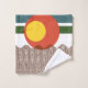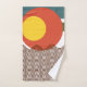 Este conjunto de toalhas tem uma design moderna do século médio de linhas onduladas horizontais com dois círculos e duas faixas largas horizontais. Quer cores diferentes? Me mande mensagem.