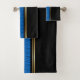 Um lado destas toalhas elegantes é negro como o azeviche contínuo e o outro lado é um mar das ondinhas, com uma listra da beira do ouro no meio! Este grupo distintivo de toalha adicionará a cor e o estilo deliciosos a sua decoração do banho! Uma grande maneira de começar seu dia no estilo!
