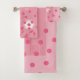 Flores & grupo cor-de-rosa de toalha do banheiro das bolinhas