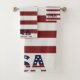 América Flag American USA Pattern Bath Towel Set, azul, vermelho e branco fogos de artifício e exibição de bandeira americana em um fundo azul para celebrar o Dia da Independência. Feliz 4 de julho, Sacudir o final do nosso feriado patriótico de verão, convidando-o para ver a correspondência de volta. Na moda Bath Towel Set para um churrasco comemorativo do dia 4 de julho, festa do dia do trabalho ou qualquer festa patriota. América Flag com faixas vermelhas, vermelhas e brancas e estrelas brancas sobre fundo azul marinho. As estrelas representam os Estados da América. Ideal para vestuário, decoração doméstica, acessórios e presentes. Mostre seu patriotismo nos EUA no dia 4 de julho ou no Dia do Memorial ou em qualquer evento esportivo. #puleceblanket #americano #usa #patriota #esportistas