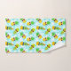 Engraçado, abacaxis de Natal tropical vestindo óculos de sol e festivamente decorados com luzes de Natal, ornamentos e canetas doces. Este padrão tem um fundo azul pastel com flores de hibisco havaianas. Estas toalhas de banho são divertidas por adicionar um sotaque de Natal de praia ao seu banheiro!