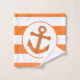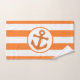 Banhas de laranja e design de âncora. Este conjunto de toalhas do banheiro pode ser personalizado com qualquer texto de sua escolha. Se precisar de ajuda para personalizar, entre em contato conosco através do link desta página. Toalha de banheiro listrada de âncora