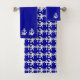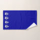 A âncora da nave branca é replicada várias vezes contra um fundo azul escuro na toalha de banho. Âncora do solteiro no canto do pano de lavagem. Quatro âncoras em uma ponta de toalha.