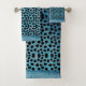 Toalha definida nas Rochas (Azul e Negro) Da coleção On the Rocks é uma diversão tirar a impressão falsa do leopardo em um tecido azul de praia tweed com contraste preto. Veja o mesmo padrão em rosa e preto, seu sonho! Toalhas e travesseiros são apenas alguns dos itens decorativos em casa em que este padrão está disponível.