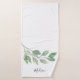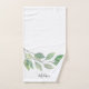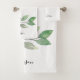 Este conjunto de toalhas de banho botânicas apresenta aquarela verde e tipografia de letra estilosa e é facilmente personalizável.
