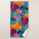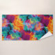 Esta toalha apresenta uma cor néon abstrato arco-íris colorido e pintura a tinta num fundo preto.