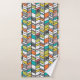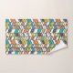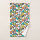 Este conjunto de toalhas tem uma design moderna do século médio de erva-índia com cores e linhas retrorreflectoras que enchem alguns dos espaços.
