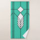 Este conjunto de toalhas tem um design de diamantes e linhas em branco, preto e turquesa com janela de vidro colorido.
