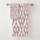 Este conjunto de toalhas tem um design de diamantes Art Deco conectado por linhas curvas em vermelho de tijolo.