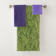 Adicione um belo toque botânico ao seu banheiro com este trio de toalhas. A grande toalha de banho apresenta um design de arte vintage de flores da íris púrpura, um campo verde-pastoso e árvores de estado à distância. A toalha da mão e o pano da face/toalha da face são dois tons complementares de roxo sólido (roxo escuro e lilac/mauve). Relaxando e pacífico, o design atualizará seus sentidos e adicionará elegância e estilo ao seu espaço. Adequado para estilos de decoração tradicionais ou mais modernos. Uma atualização chic e exclusiva para sua casa. Pode ser misturada e combinada com outras toalhas na minha coleção "Purple Iris and Green Field Botanical Bathroom".