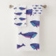 Conjunto De Toalhas Arte de baleia branca desenhando em azul oceânico