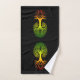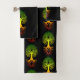 Uma árvore vermelha, amarela e verde com ramos e raízes em forma cardíaca amorosa.