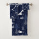 CONJUNTO DE TOALHAS ÁRVORES E BUNHIAS DE NATAL AZUL-ESCURO