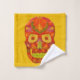 Meu Dia do crânio inspirado nos mortos celebra a vida e a morte com uma colagem das minhas pinturas em folha escaneta, apresentando as vermelhas e amarelos do outono.