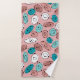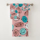 Este conjunto de toalhas tem um design atômico moderno do século médio de contornos ovais com pequenos círculos e ovais de cor sólida dentro.