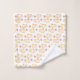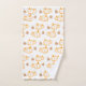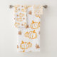 Vestir seu banheiro para uma bela queda com a toalha de outono. Com padrão de abóboras em laranja, folhas em marrom e um fundo branco nítido.