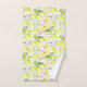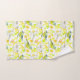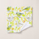 Um conjunto de toalhas com tema de aves que apresenta um padrão de aves e folhas ilustradas com tinta e aquarela acentuadas com um amarelo sólido alegre na toalha do banho.