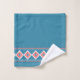 Este conjunto de toalhas de banho apresenta uma borda de formas aztec, cor-de-rosa-coral e diamante geométrico em um fundo azul-turquesa correspondente.As imagens de diamante estão contidas em uma armação de linha dupla. O design está no topo e no fundo da grande toalha de banho e da toalha da mão, e no fundo do pano de lavagem. Linda! Certifique-se de ver a cortina de chá e o tapete de banho na nossa loja.