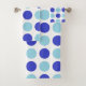 Alternando bolinhas azuis azuis e pastel contra um fundo branco.