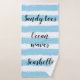 Listras cor-de-coral, amarelas, azuis-celeiros e brancas. Castelos de areia, pôrs do sol, dedos arenosos, ondas oceânicas, conchas. Tipografia de praia em Verão. Arte original e Design © TamiraZDesign.