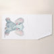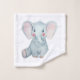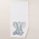 Montagem de toalha de banho branca e azul de elefante, um monograma moderno.