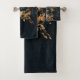 Conjunto De Toalhas Azul Marinho Escuro & Dourado Floral Rústico Glam