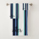 Adote um toque de sofisticação com a nossa toalha de banho de monograma listrada azul colorida. O design apresenta um nome de família de monograma grande em uma fonte cursiva clássica. Eleve o charme do seu banheiro com este presente único e personalizado que combina elementos modernos e clássicos.