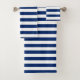 Conjunto de toalhas de listras brancas e azuis. Padrão real, azul e branco, listrado.