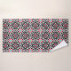 Toalha colocada em um padrão de azulejo de Art Deco marroquino baseado em flores e folhas estilizadas - preto clássico e branco com cor-de-rosa-coral, acentuado com azul-turquesa