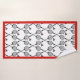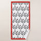 Toalhas de Badminton, toalhas de banheiro personalizadas de raquete e obturação com monograma mostrando um ícone preto minimalista de duas rajadas de badminton e um vaivém com uma borda vermelha. A toalha da mão apresenta listras pretas, brancas e vermelhas enquanto o pano de lavagem está em cor vermelha com o seu monograma.