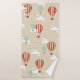 Toalhas de banho temáticos do viajante adorável do balão de ar quente. Caracterizam balões de ar quente vermelhos e azuis, a linha pontilhada bonito nuvens macias brancas, o fundo bege, e a acentuação do rosa de compasso na toalha de banho.
