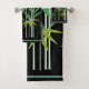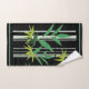 Bambu em toalha de banho preta, com cortinas de chá correspondentes.