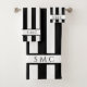Listras negras e brancas modernas, monograma, toalha de banheiro, design por Sandy Closs