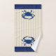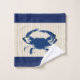 Caranguejo azul costeiro e toalhas de banho de listras esticadas, perfeitas para o seu elegante banheiro de praia!