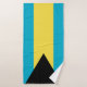 A bandeira Bahamiana é um tricolor horizontal com um divisa preto. As cores usadas na bandeira são azul, amarelo, preto. A proporção da bandeira das Bahamas é de 1:2. A bandeira das Baamas foi adotada em 1973. A primeira utilização do atual design de bandeira foi em 1973. A última mudança para a atual design das Bahamas foi em 1973.
