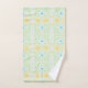 Más de colar amarelo, azul e acentuado com lacrimejo. O fundo verde-claro-suave pode ser personalizado para qualquer cor para coordenar com a decoração. O padrão florado é amovível se você desejar um conjunto de toalhas de cor sólida.