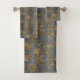 Conjunto De Toalhas Banheiro Elegante Dourado Azul Faux